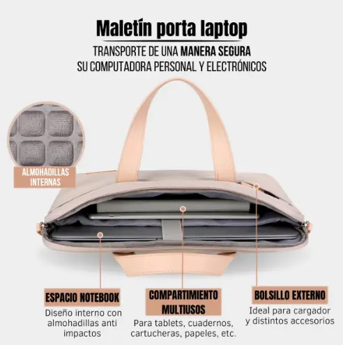 Su diseño inteligente permite llevar no solo la computadora, sino todos tus periféricos esenciales de forma ordenada y segura.